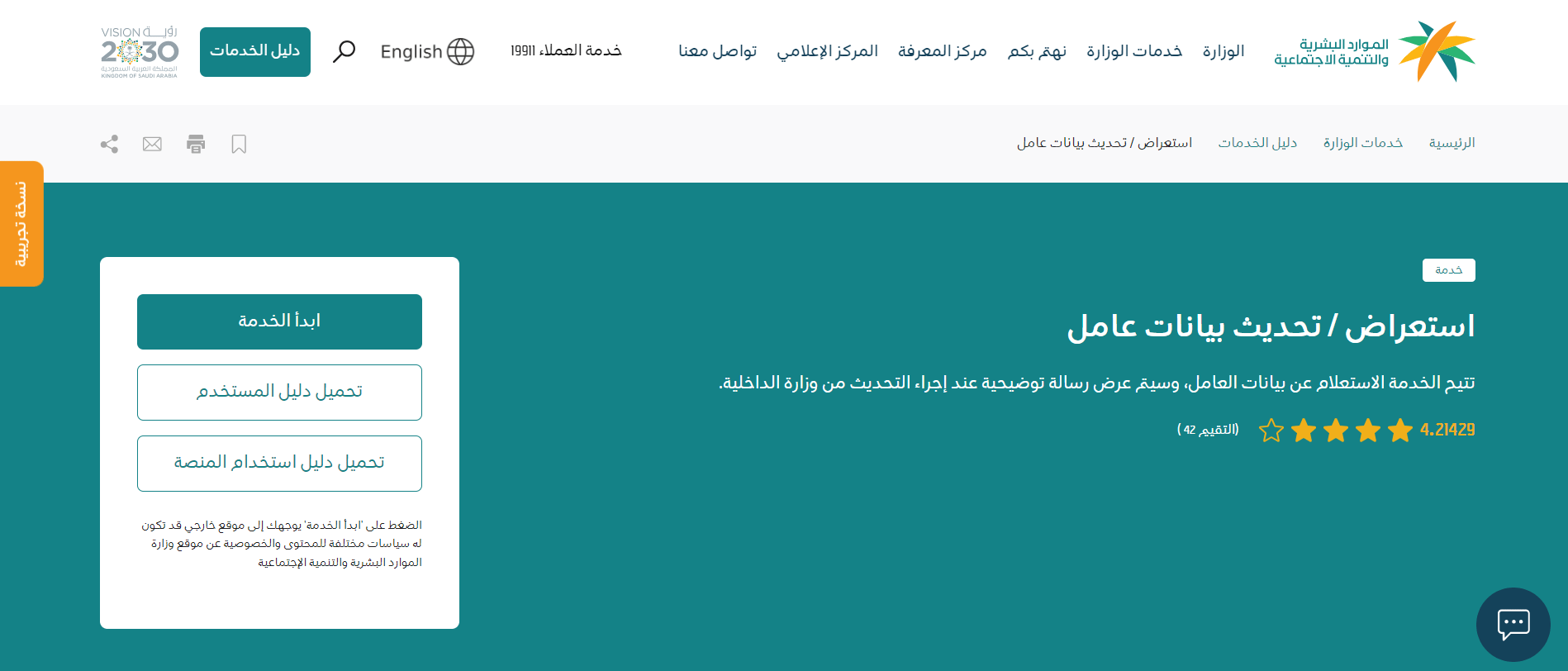 - الضغط على اختيار استعراض / تحديث بيانات عامل من قائمة خدمات العمالة.